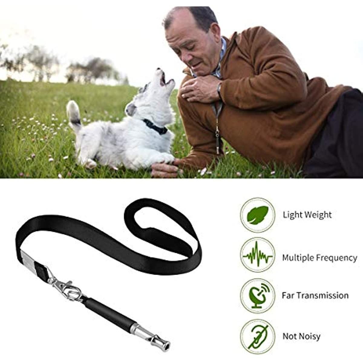 EFFECTIVE DOG TRAINING: Your pet can hear the dog whistle up to 25 meters away even if they can't see you! Train your dog with different commands and get them to follow your instructions. (Sit; Paw; Lay Down; Up; Heal).