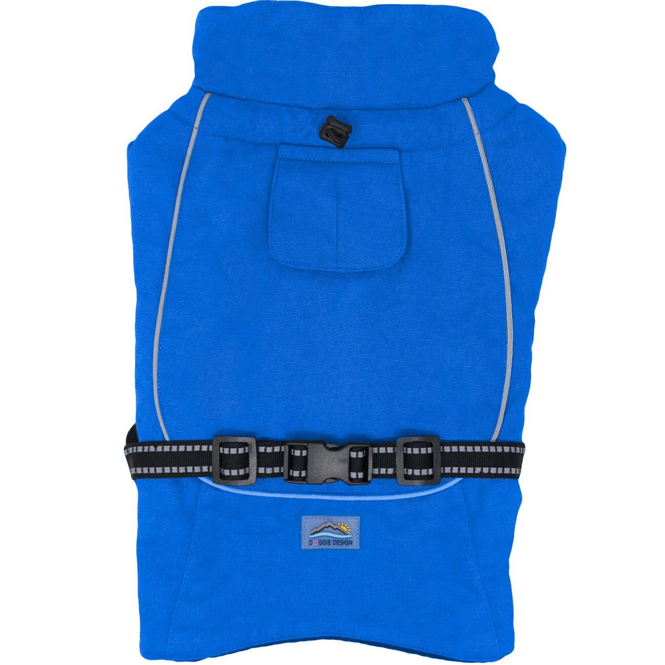 Get ready for the great outdoors! The Alpine Tuf Terrain dog coat is made with a tough cotton canvas outer layer while still keeping the cozy fleece lining and soft sherpa-lined collar of our other Alpine coats. Straps are adjustable with reflective safety trim. Coat offers covered D-ring access hole and is available in sizes XS through 5XL. The cotton canvas fabric is durable and water resistant - excellent for hiking, herding, or trekking through the urban jungle.
