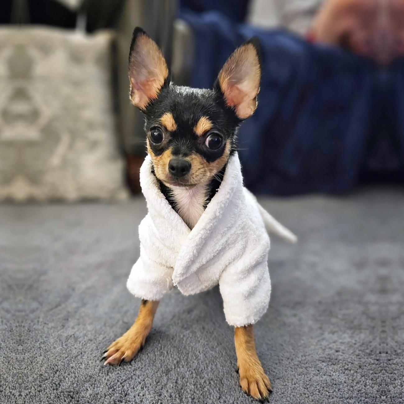 Home > White Silver Tiara Cotton Dog Bathrobe by Doggie Design