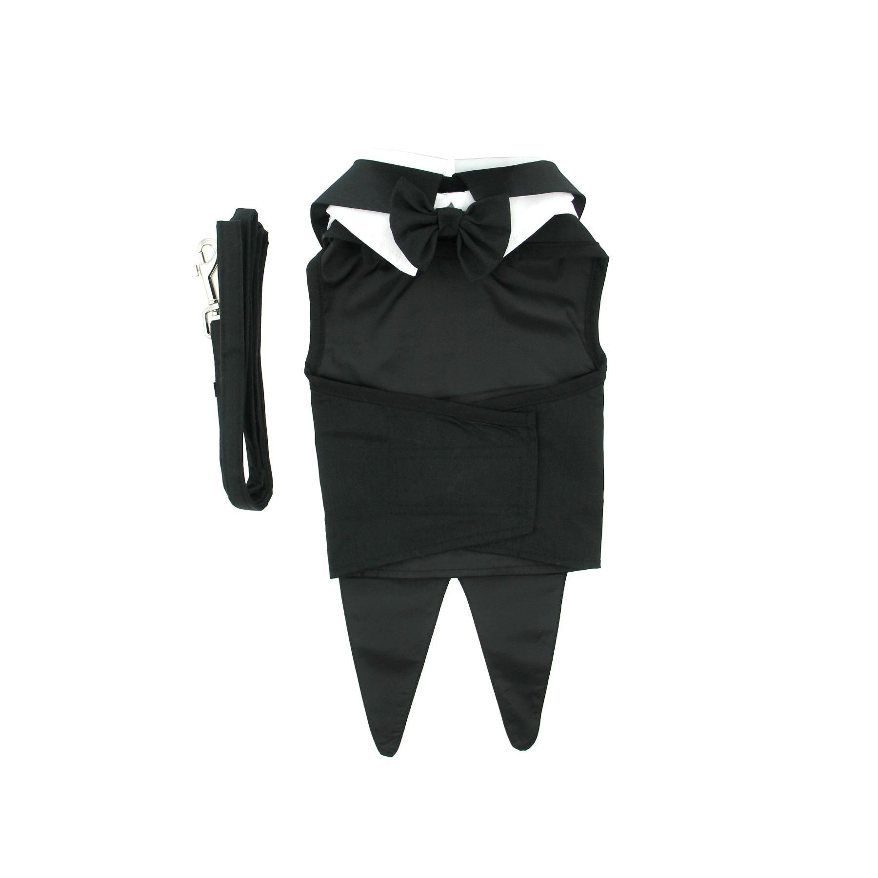 Black Dog Harness Tuxedo w/Tails, Bow Tie, and Cotton Collar