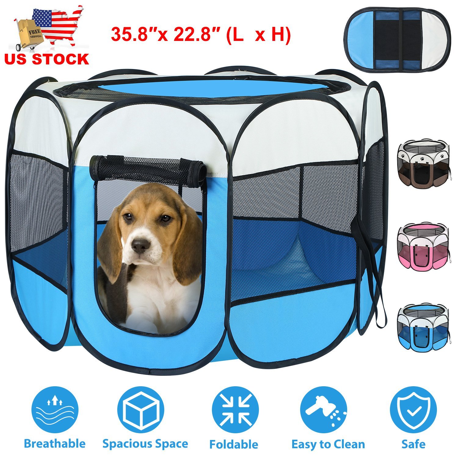 Portable Foldable Pet Tent Exercise Pen Kennel Removable Zipper Top and Bottom Water Resistant Indoor Outdoor Use For Dogs Cats Other Pets