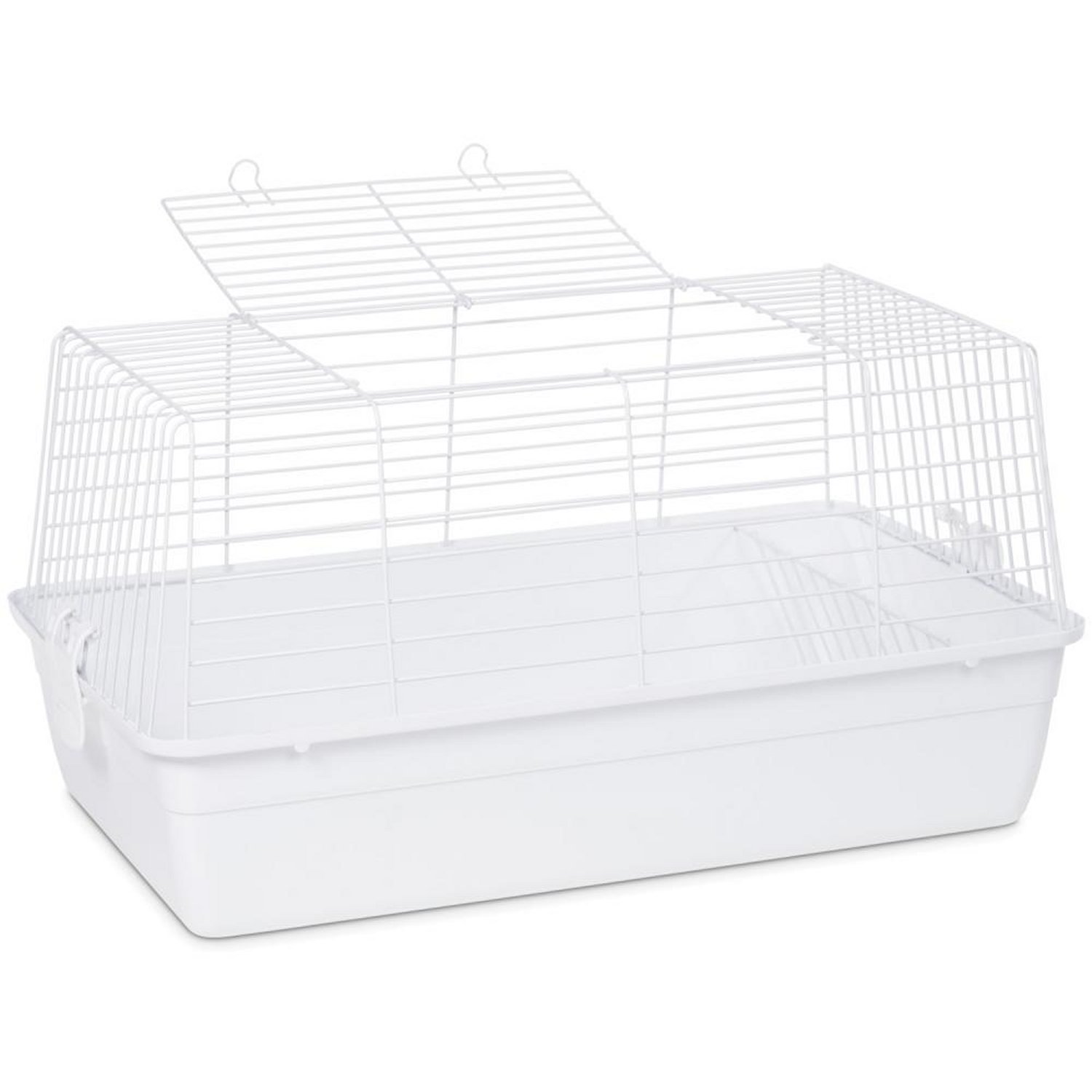 Prevue Pet Products Carina cage is ideal for guinea pigs and dwarf rabbits. It features and all-welded mesh with 7/8" wire spacing, and a large top-opening door. The deep base has a built-in angled hayrack. Snap-off end clips hold the mesh securing in place and remove easily for cleaning. Measures 23 1/2" Long, 14" Wide, and 12 1/4" High.