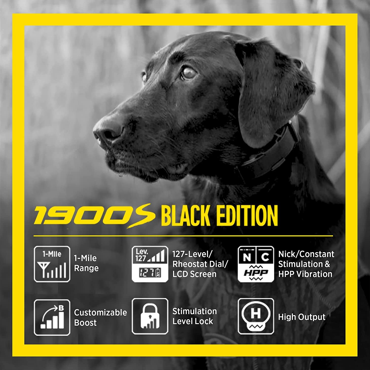 BOOST & LOCK FEATURES: Enhance your training experience with the superior Boost button. The constant correction with a customizable Boost button allows for instant level increases to immediately recall you dog. Go from training mode to obedience mode easily by setting your own custom Boost to jump to your enhanced training level seamlessly. The newly introduced Safety Level Lock prevents unwanted or accidental level changes. 1-MILE RANGE: The range of this training e-collar is perfect for simple to complex training commands for your dog. The 1900S BLACK is a 1-mile, single-dog version of our bestselling 1900S e-collar is perfect for serious obedience, hunting, and K-9 training.